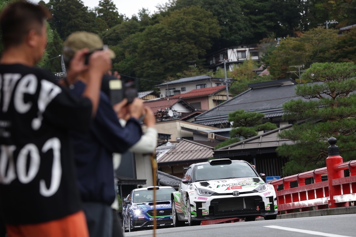 ラリーカーはこの後、高山市の町並みの中を走るリエゾンルートを走行。近年、多くの外国人観光客が訪れる高山市だが、この日も朝市が行われている時間帯ということもあり、多くの人々が注目するなか、ラリーカーたちは最初のステージ、SS1「あたがす」(9.54km)へと向かっていった。