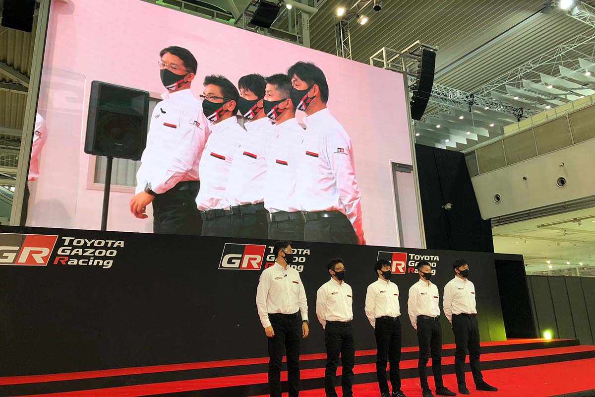 会場にはGAZOO Racing Companyの佐藤恒治プレジデントとともに2クルーが登壇。勝田/木村組は2021年にドライバーズ/コ・ドライバーズタイトルを獲得しており、タイトル連覇を目指すとしている。